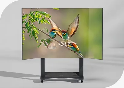 709 colour gamut, powered by Cinema SuperColor+™ Technology. Built with durability in mind, the display boasts an IP54-rated GOB surface for resistance to dust and moisture. The motorised stand allows easy height adjustment, and the display can be moved effortlessly on 360° wheels, making it perfect for high-traffic environments.